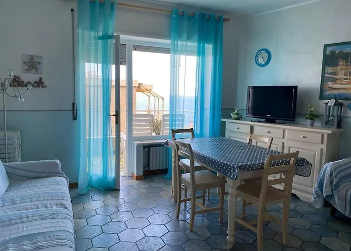 La propiedad ofrece vistas al mar e incluye un cuarto de estar, un balcón y una cocina con climatizador. El Apartamento Bilocale In Zona Residenziale cuenta con 2 dormitorios. Para mayor comodidad, el apartamento dispone de un bidé, un inodoro separado y una ducha. El cuarto de baño dispone de secador de pelo y toallas de baño.